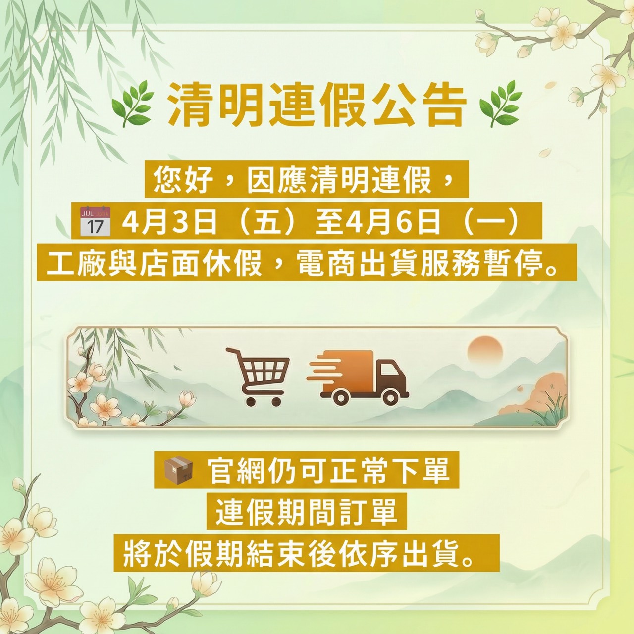 清明連假-官網可正常下單