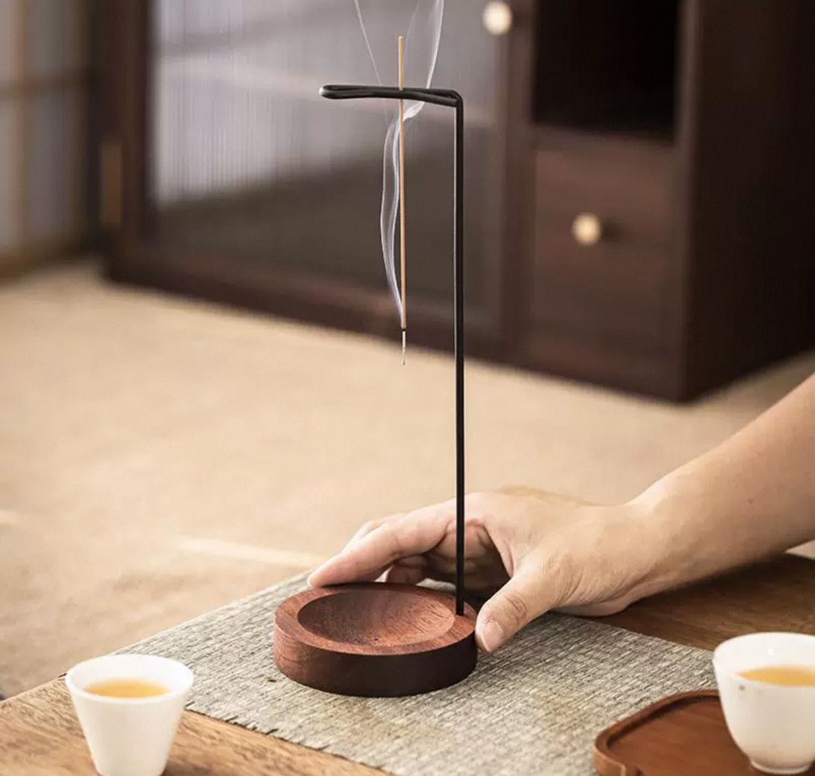 使用方式 : 將臥香卡在卡扣上面 / 木底座可盛住香灰